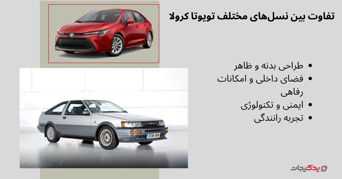 تفاوت بین نسلهای مختلف تویوتا کرولا