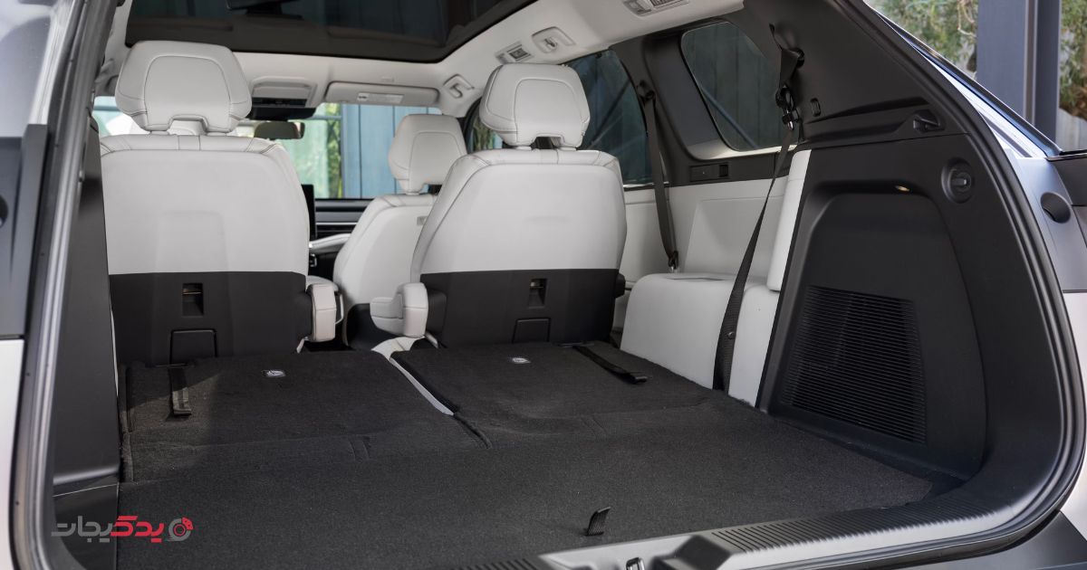هایلندر 2027 یک SUV 7 نفره است با فضای بیشتر و دسترسی راحتتر به ردیف سوم. سقف پانورامای شیشهای حس فضای باز میدهد و فضای بار با خواباندن صندلیهای ردیف سوم به 1274 لیتر میرسد.