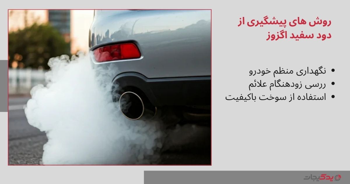برای جلوگیری از بروز مشکلاتی که منجر به دود سفید اگزوز می‌شوند، رعایت نکات زیر می‌تواند بسیار موثر باشد: