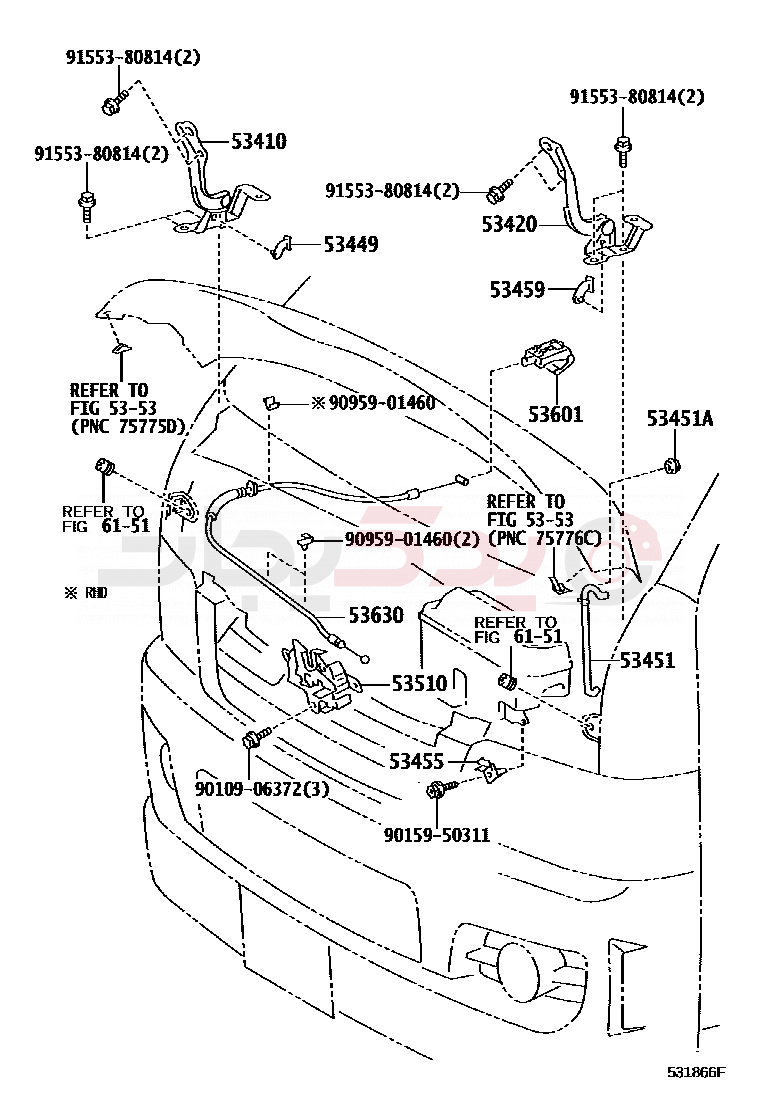 قفل درب کاپوت ( تویوتا , هایس ) / تویوتا و لکسوس معرفی محصول 5351026060